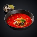 Состав: Лосось, угорь, тунец, мидии, креветка в темпуре, снежный краб, соус “Спайси”, нори, рис.