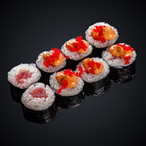 Тунец, соус “Спайси”, икра “Масаго”, нори, рис.