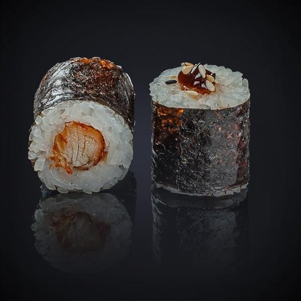 Состав: угорь, соус «Унаги», кунжут, нори, рис.