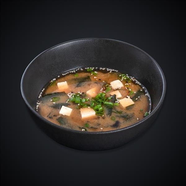 Сыр «Тофу», грибы «Шампиньоны», паста «Мисо», водоросли «Вакамэ», лук зеленый, кунжут