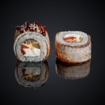 Состав: лосось, тунец, креветка, огурец, сыр “Cremette”, нори, рис.
