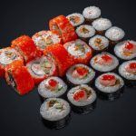 Состав: Филадельфия классик 1/2, Филадельфия с тунцом 1/2, Сушинка 1/2, Запеченный с копченой курицей, Жареный ролл с копченым лососем, Жареный ролл с мидиями, Ролл с огурцом и мидиями.