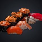 Запеченный от Катаны — 1/2, Запеченный с лососем — 1/2, Запеченный с мидиями и снежным крабом — 1шт, Запеченный с копченой курицей