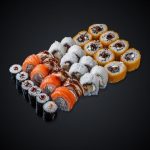 Состав: Филадельфия классик, ролл с лососем, гункан с лососем — 2 шт, суши с лососем — 2 шт