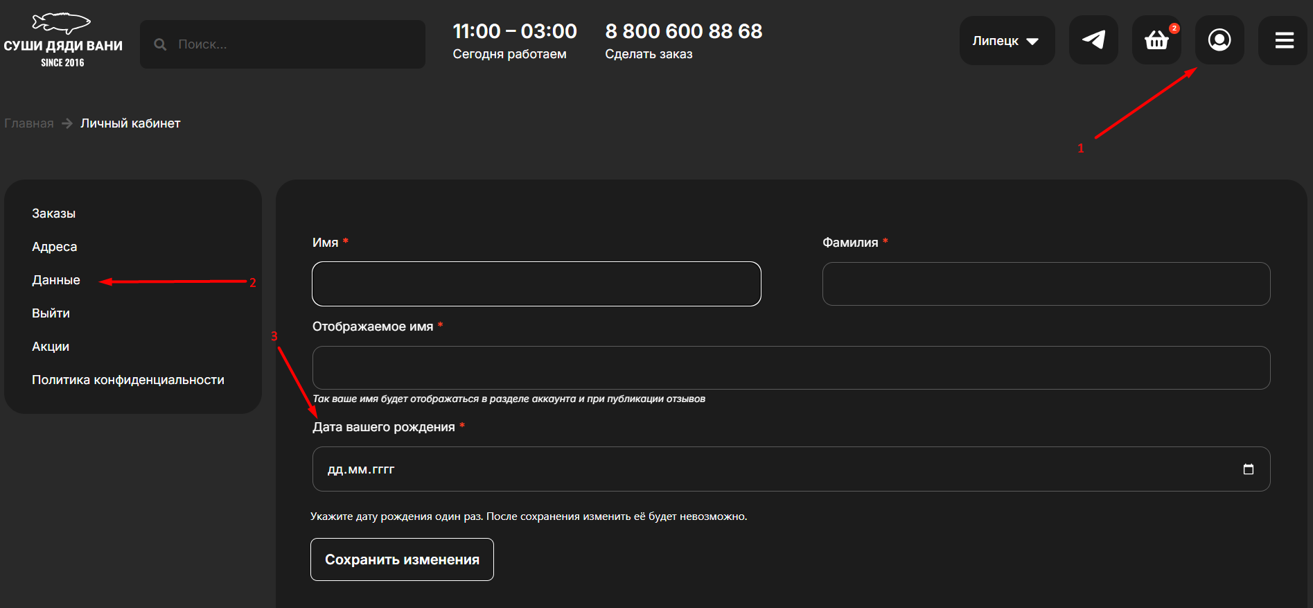 Для внесения данных о вашем дне рождения следуйте нашей инструкции.